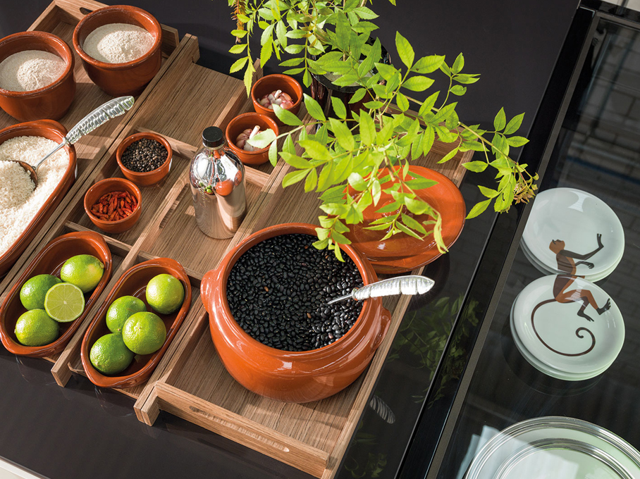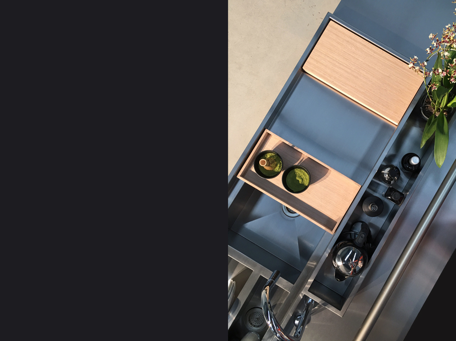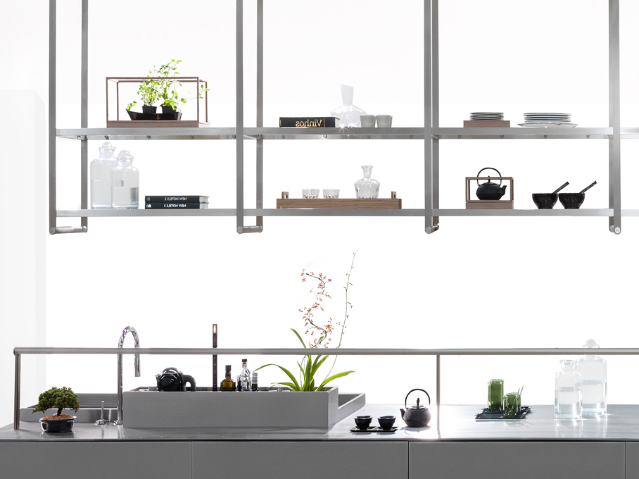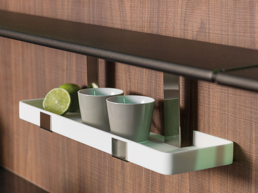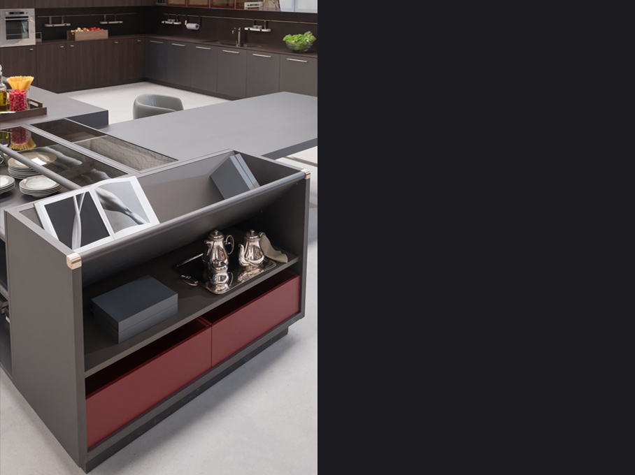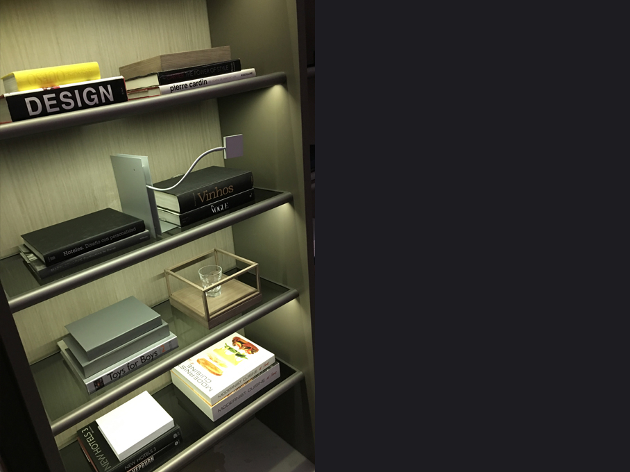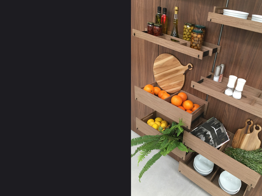 Os elementos que compõem esta coleção revestem e decoram a casa como um ambiente único: revestimentos, armários, closets, banheiros e cozinhas interpretados como elementos que geram espaços interligados e harmônicos, composta de painéis, perfis de suporte, móveis e prateleiras de diferentes formas e espessuras, disponíveis em uma ampla gama de materiais, cores e acabamentos. A composição destes elementos gera múltiplas con gurações que se adaptam a todas as necessidades e ambientes.