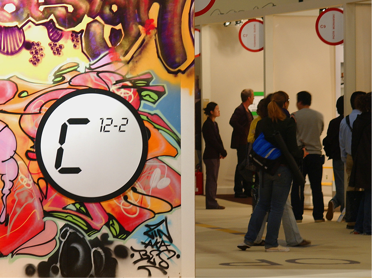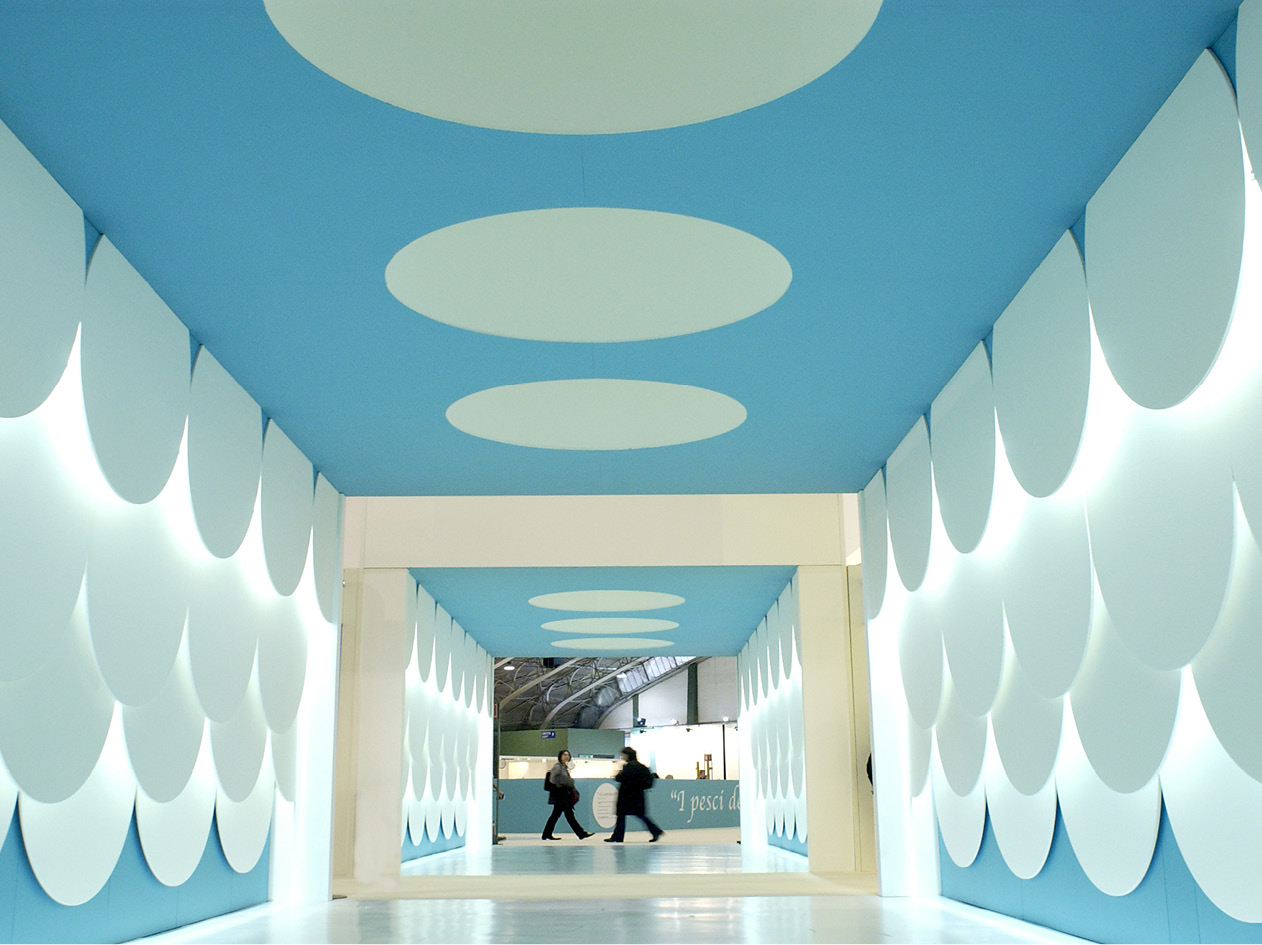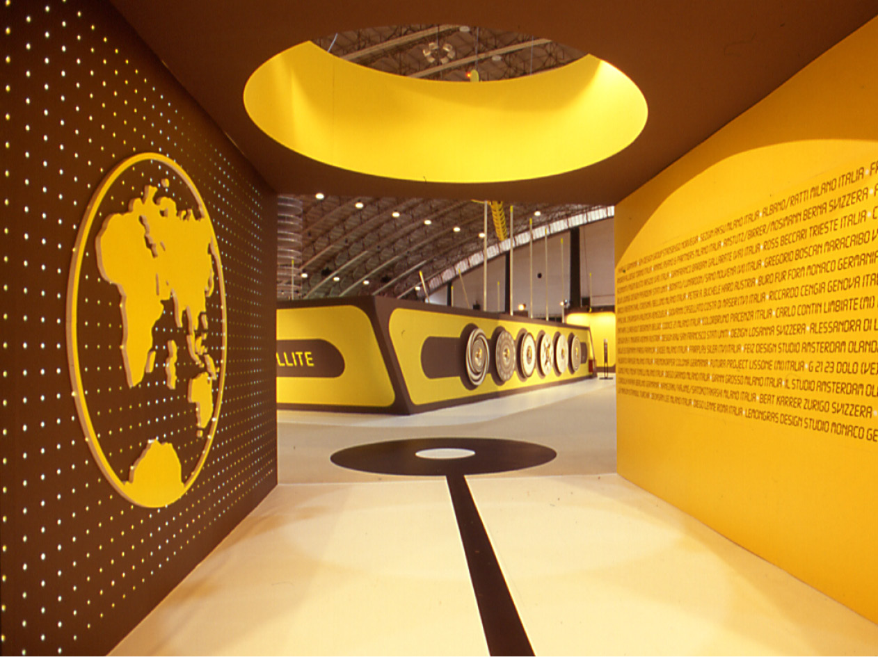 the concept for the first edition that ever followed this principle, resulting in a space that simulated an open square — or piazza — with narrow streets and shops, modular and easy to put together, with different dimensions according to the display requirements of the designer.