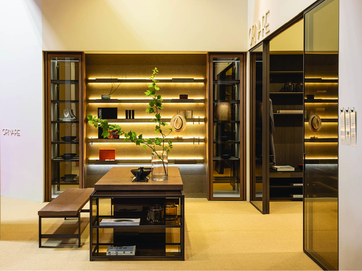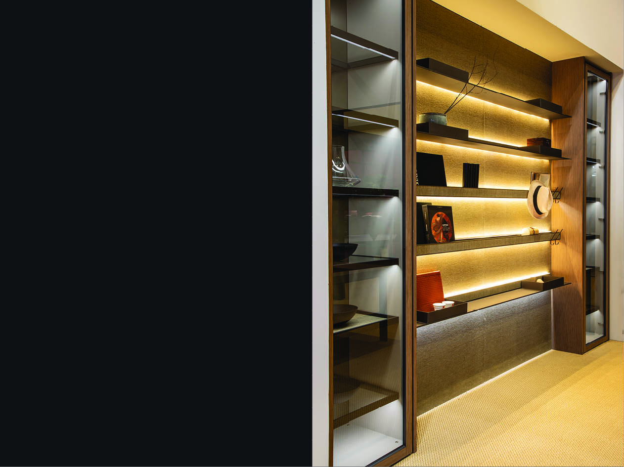 West East collection presents 4 lines of products: Ikigai, Shaker, Infinite and Mech, each of them including a range of solutions for kitchens and wardrobes. Furthermore, we have designed an esclusive system of doors and a modular bookshelf, together with a variety of new accessories.