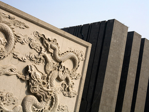 Annexed to the Olympic Stadium, the complex was designed by C.Y.Lee & Partners. The overall structure consists of five architectural volumes that evoke the form of a dragon: head, body and tail, being the last one represented by the Pan Gu Plaza Hotel, which offers a panoramic view of the Olympic Forest Park and the Olympic pool. The 22-story hotel includes, among other things, 250 suites, lounges, bars, restaurants, fitness spas, a business center and ballroom.
