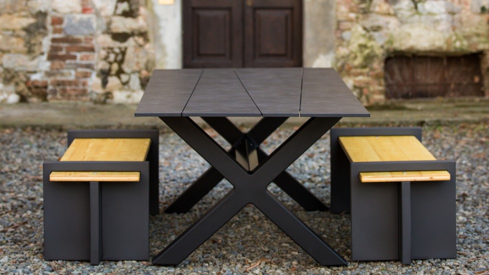 Unconventional and lightweight Italian furniture for outdoors, easy to assemble and transport, perfect for terraces, gardens, street furniture and homedecor.